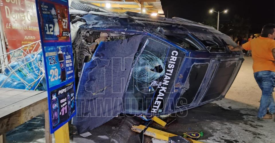 Lo chocan y por perseguir al responsable se estrella contra negocios en Matamoros
