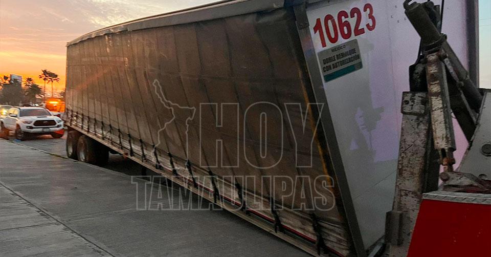 Se hunde en pavimento caja de tráiler cargada con cerveza en Matamoros