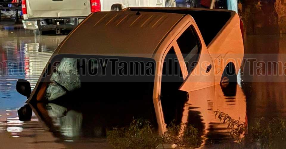 Matamoros amanece inundado; una camioneta quedó entre el agua