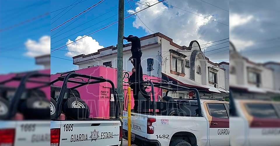 Desmantelan sistema de videovigilancia irregular en poste de telefonía en Matamoros