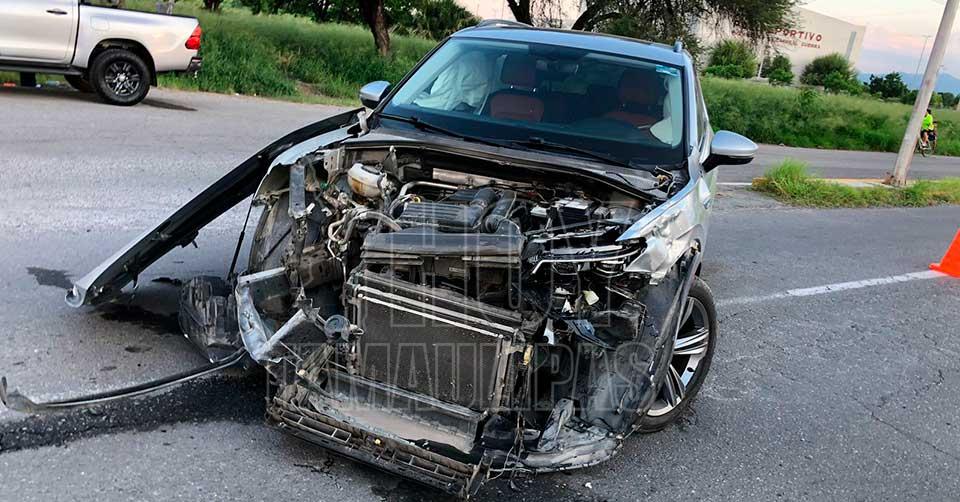 Conductoras salen ilesas tras aparatoso choque en carretera a Matamoros