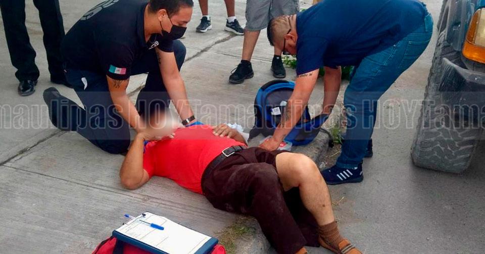 Adulto mayor se estrella en puerta de camioneta en Matamoros
