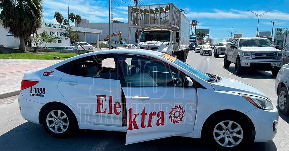 Impacta camión a taxi y lo hace que girar en Matamoros