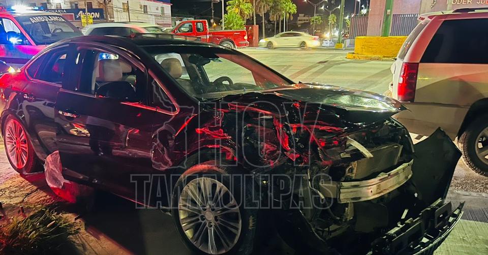 Amanecido derribó dos postes y chocó un auto en Matamoros