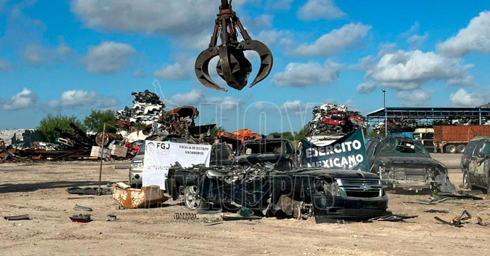 Destruyen 15 vehículos con blindaje artesanal en Matamoros