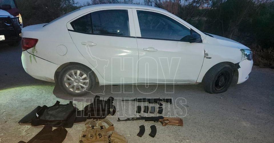 Delincuentes huyen de la GE en Matamoros; aseguran dos fusiles de asalto y equipo bélico
