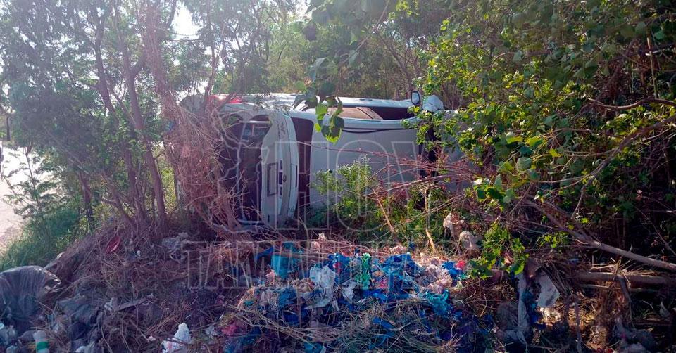 Vuelcan y sale ilesa una automovilista en Matamoros
