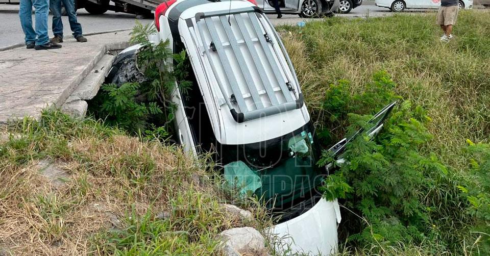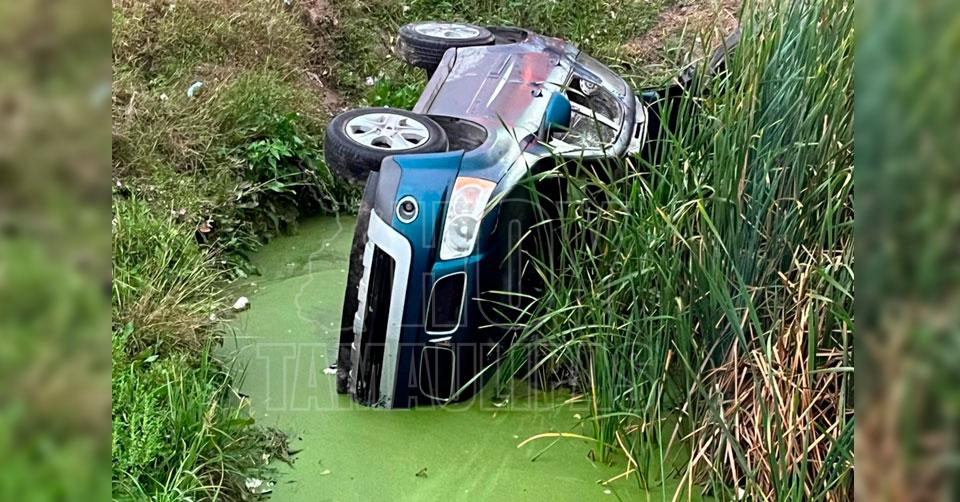 Vuelca presunto ebrio en Sendero Nacional en Matamoros; abandona carro