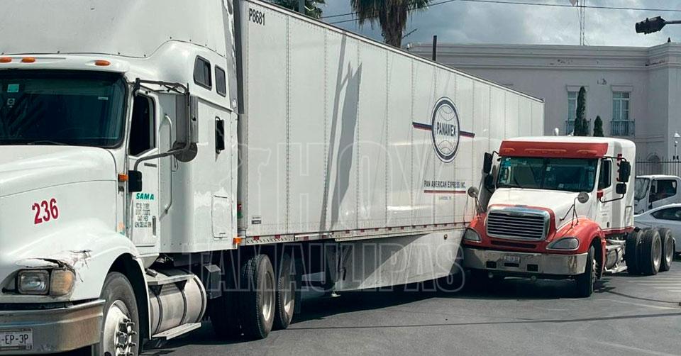 Choque entre tráileres causa embotellamiento en avenida de Matamoros