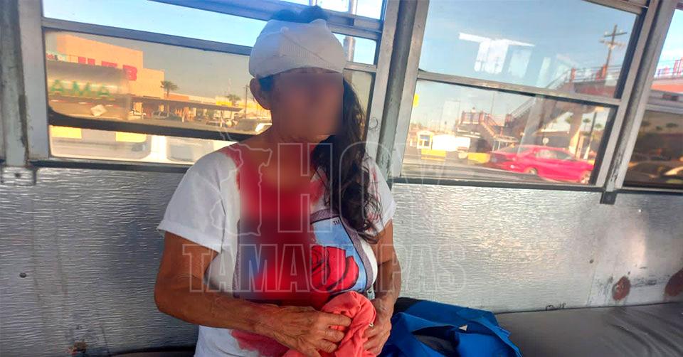 Mujer cae en microbús y resultó con herida de cráneo en Matamoros