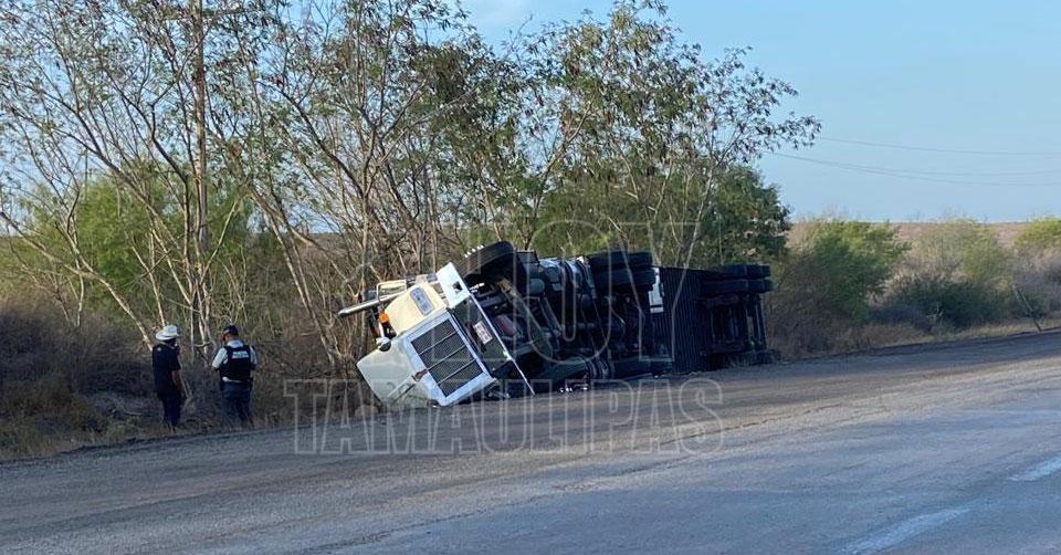 Vuelca camión cargado de limones en el Libramiento Matamoros-San Fernando