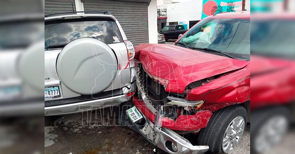 Aparatoso choque deja cuantiosos daños materiales en Matamoros