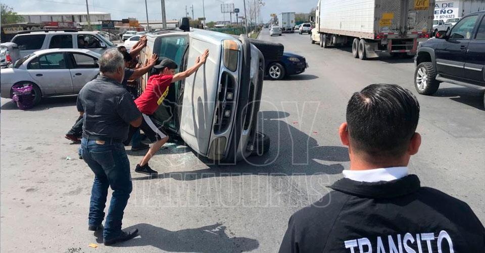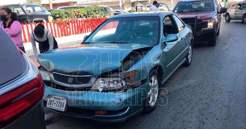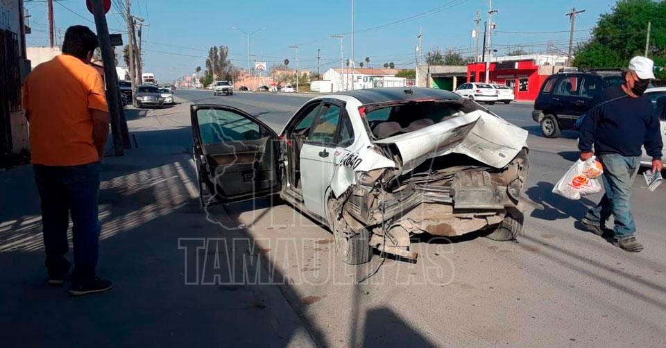 Taxista causa encontronazo en Matamoros y mujer sale lesionada
