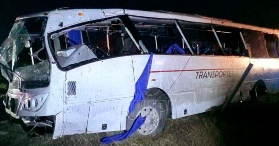 Se lesionan 16 obreros de Matamoros tras volcar autobús