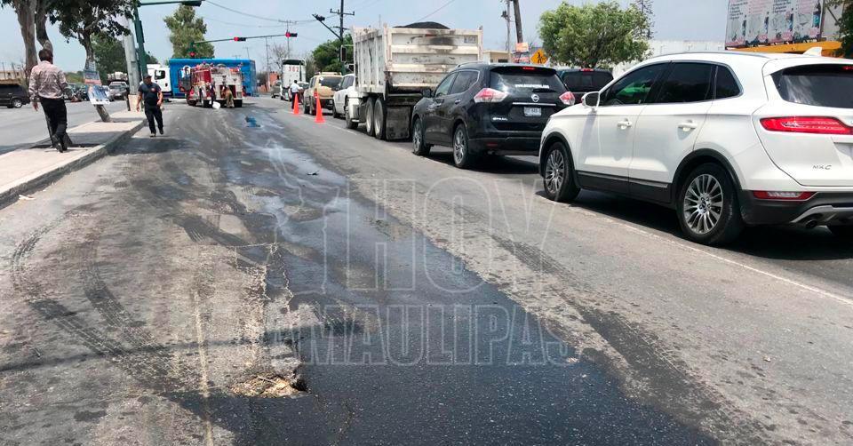 Choque genera caos vial en Matamoros tras derramarse combustible