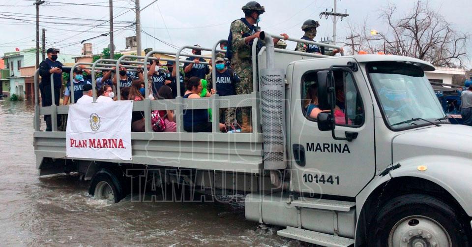 Activan Plan DN-III-E en zonas inundadas de Matamoros