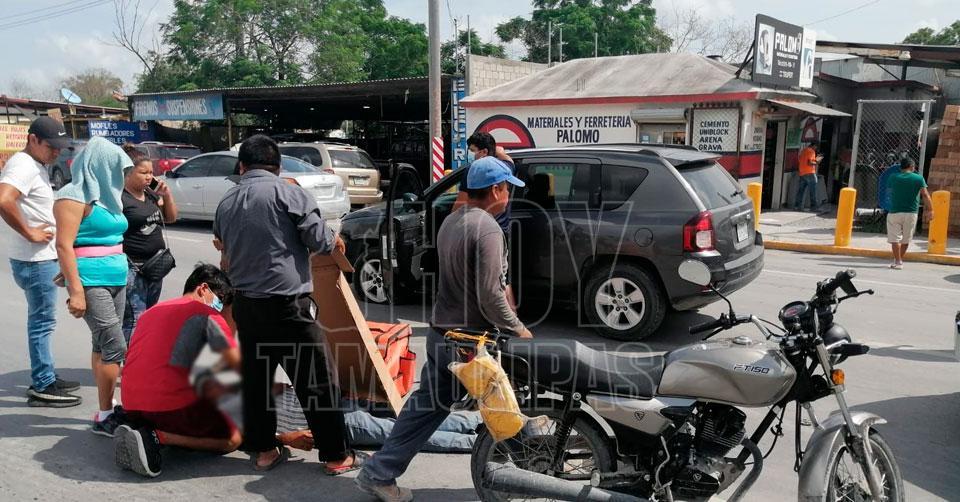 Mujer lesiona a matrimonio al chocar contra moto en Matamoros