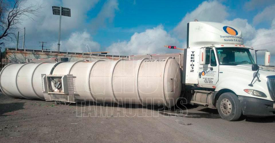Vuelca pipa en Matamoros al tratar de ganarle el paso a tren