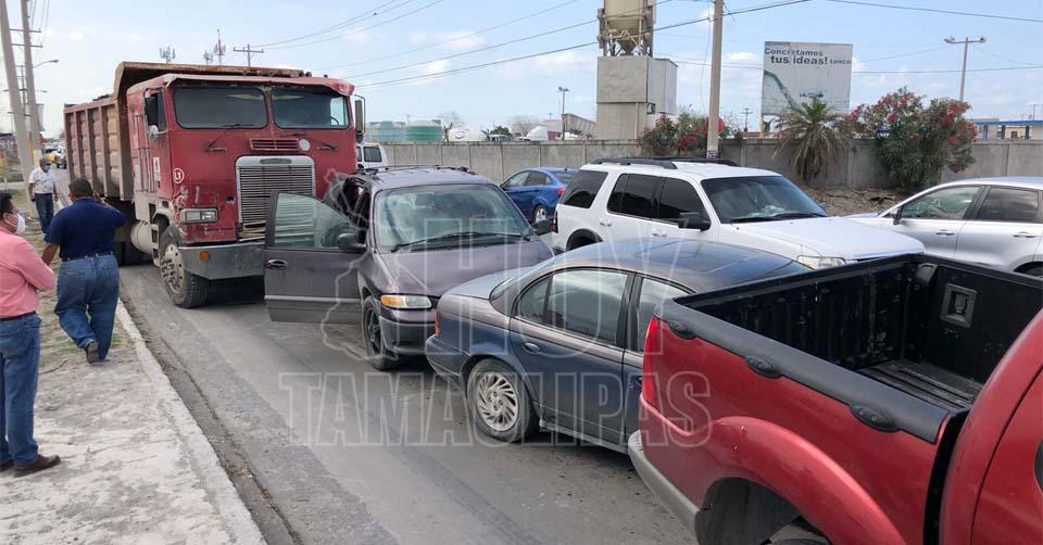 Aparatosa carambola causa camión en Matamoros al quedarse sin frenos