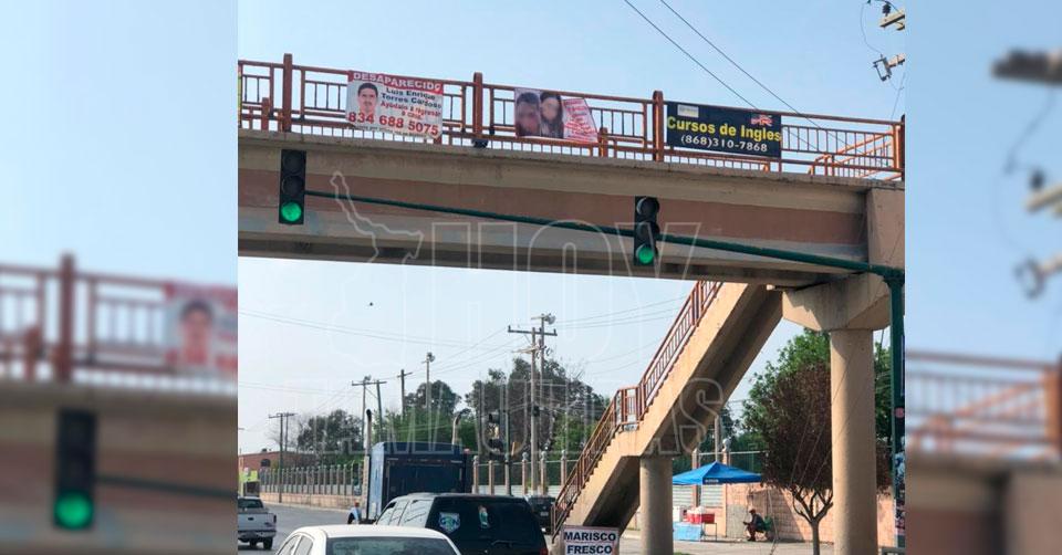 Cuelgan lona en puente de Matamoros para denunciar a presunta “roba maridos”