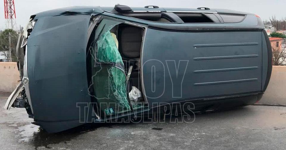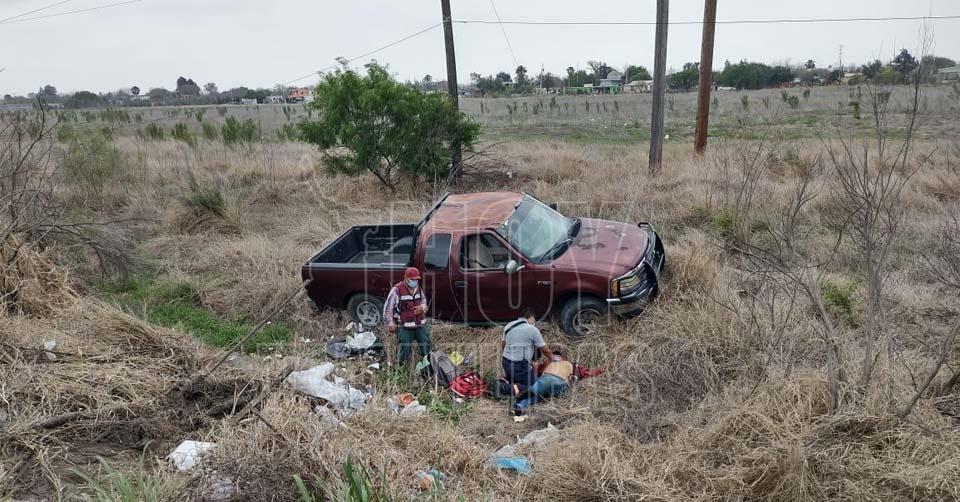 Volcadura deja a 2 empleados del municipio de Matamoros heridos