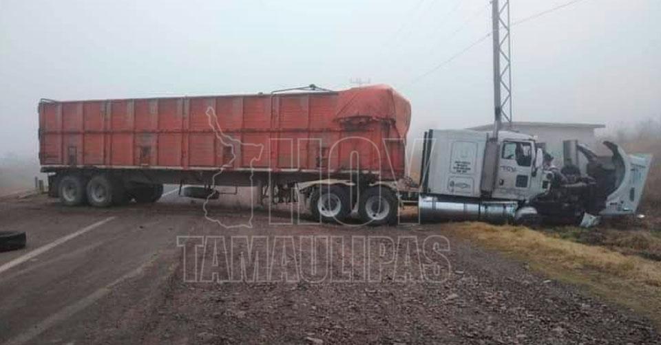Niebla provoca volcadura de tráiler en la Reynosa-Matamoros