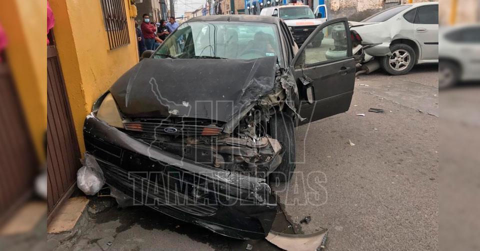 Conductora choca contra vehículos estacionados en Matamoros; hay dos lesionados