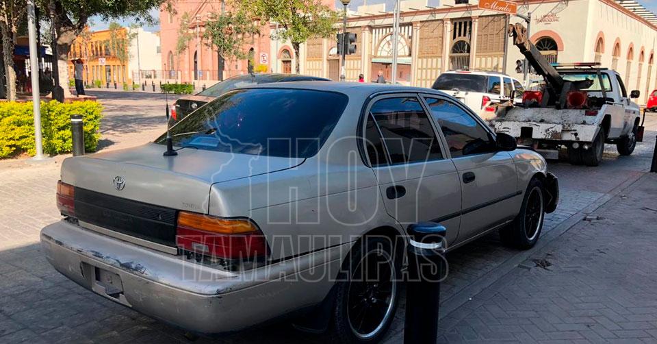 Abuelito dañó con su auto poste de contención de la plaza de Matamoros