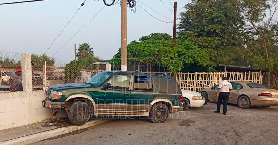 Jóvenes impactan camioneta contra barda de panteón en Matamoros