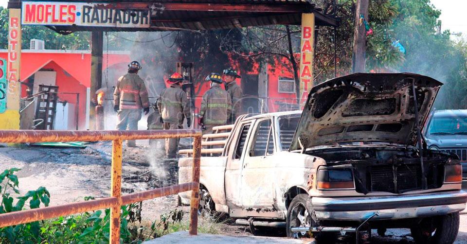 Fuego consume taller de mofles y una camioneta en Matamoros