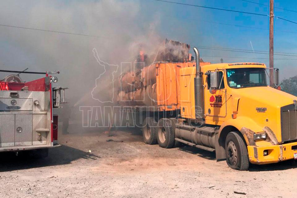 Trailero gravemente herido al incendiarse tráiler en Matamoros