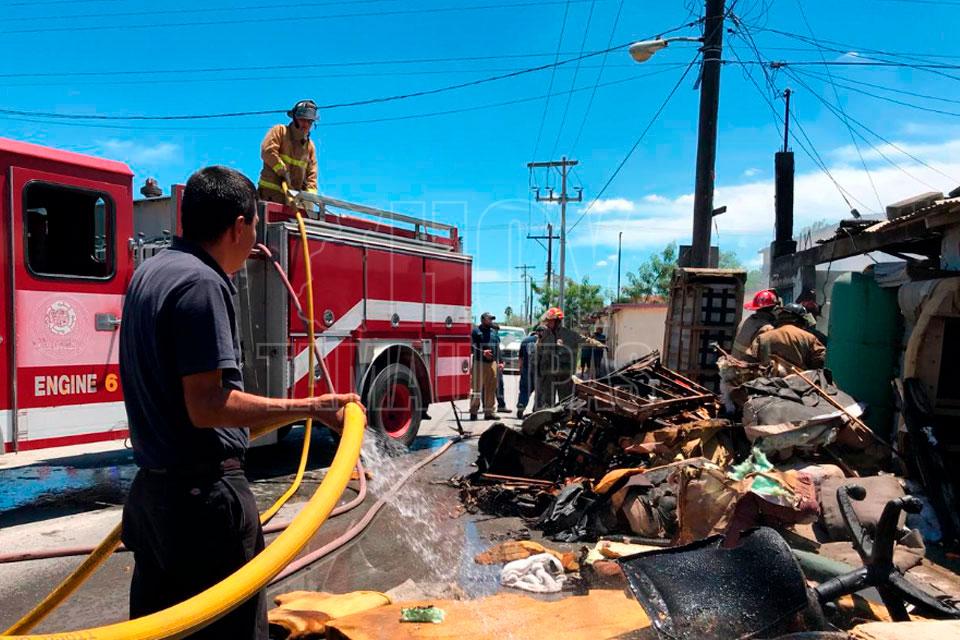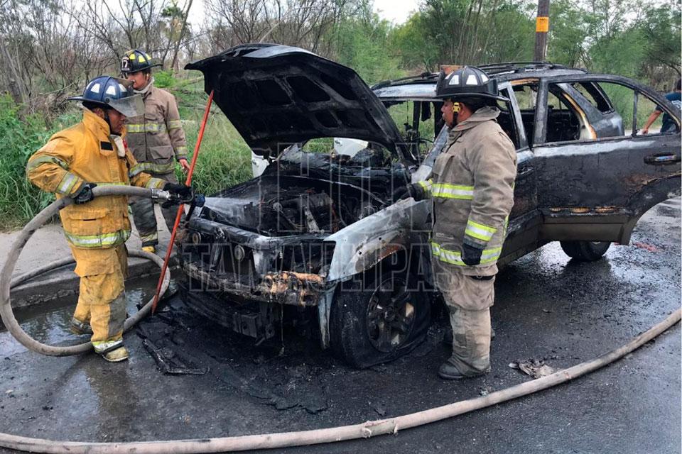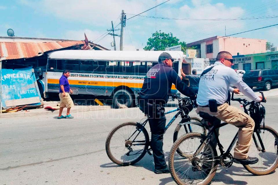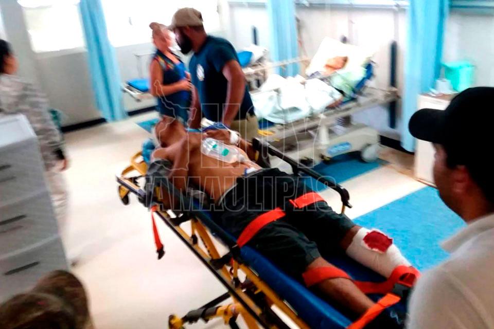 Familia sale lesionada al chocar microbús con una tapicería en Matamoros