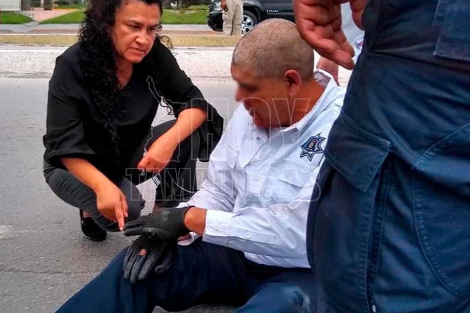 Se cae policía estatal de una patrulla en movimiento en Matamoros