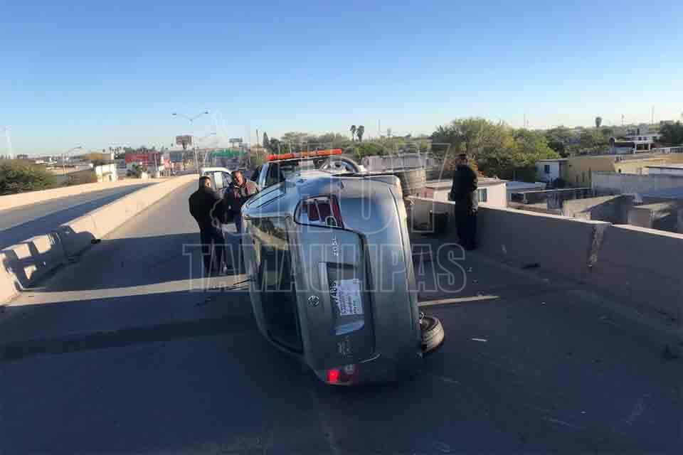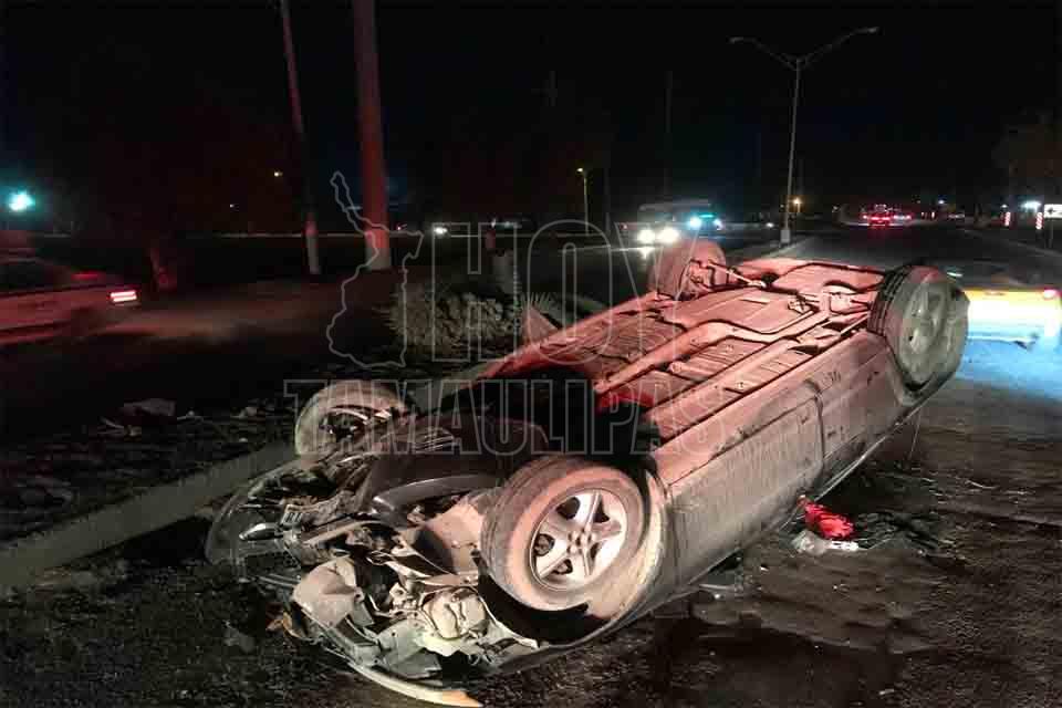 Aparatosa volcadura en Matamoros deja a una joven lesionada y un auto destruido