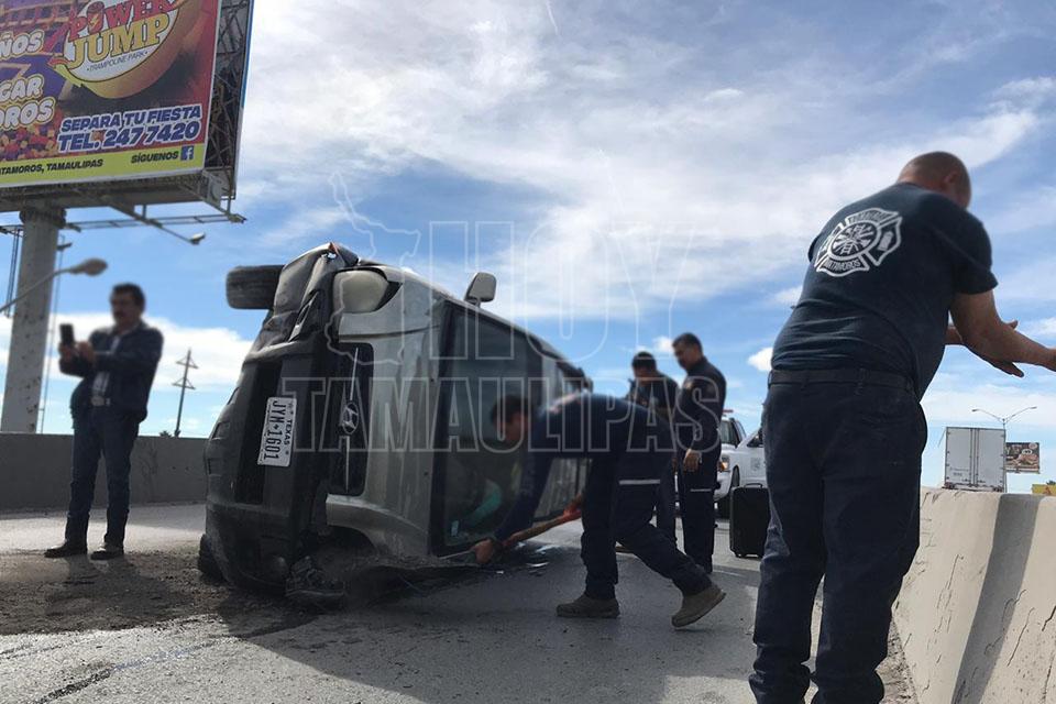 Sale ilesa pese a aparatosa volcadura en Matamoros