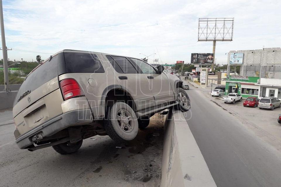 Acelerada conductora por poco y cae de un puente en Matamoros