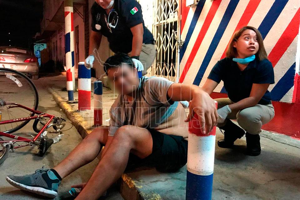 Ciclista se le atraviesa a taxi y causa accidente en Matamoros