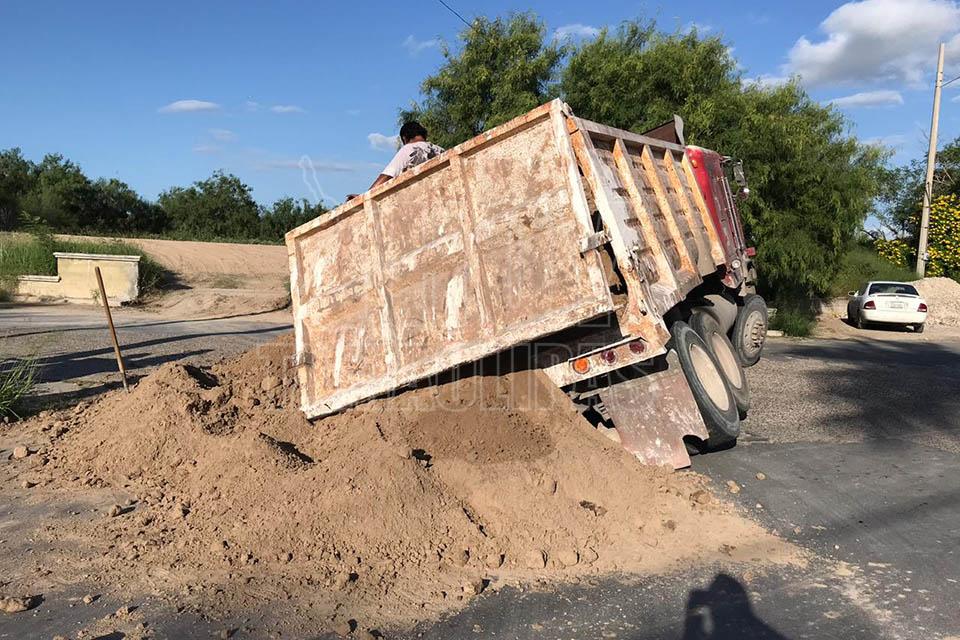 Cae camión cargado con tierra en un socavón en Matamoros