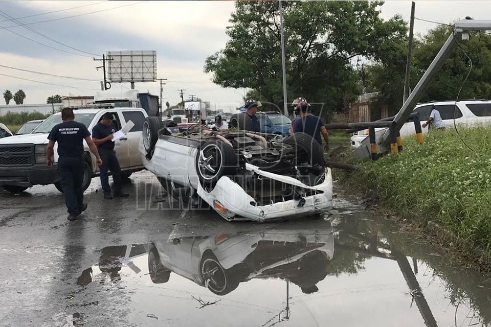 Abandonan automóvil tras volcarlo en Matamoros