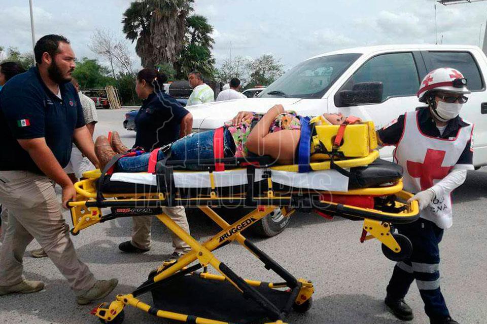 Tres pasajeras salen lesionadas al ser chocado microbús en Matamoros