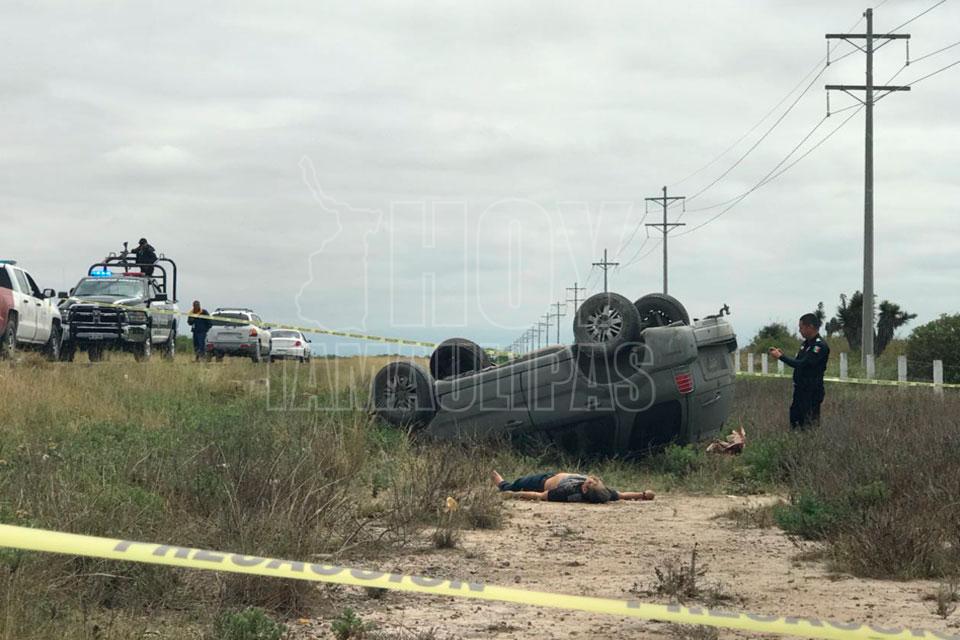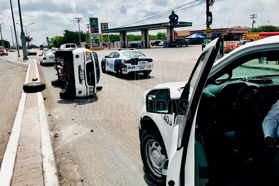 Familia sale lesionada al volcarse camioneta en Matamoros