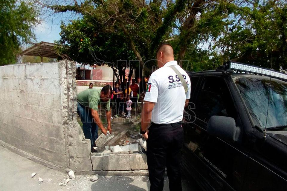 Estrella su camioneta contra barda de Primaria en Matamoros