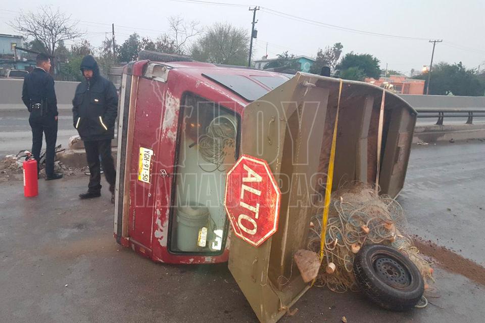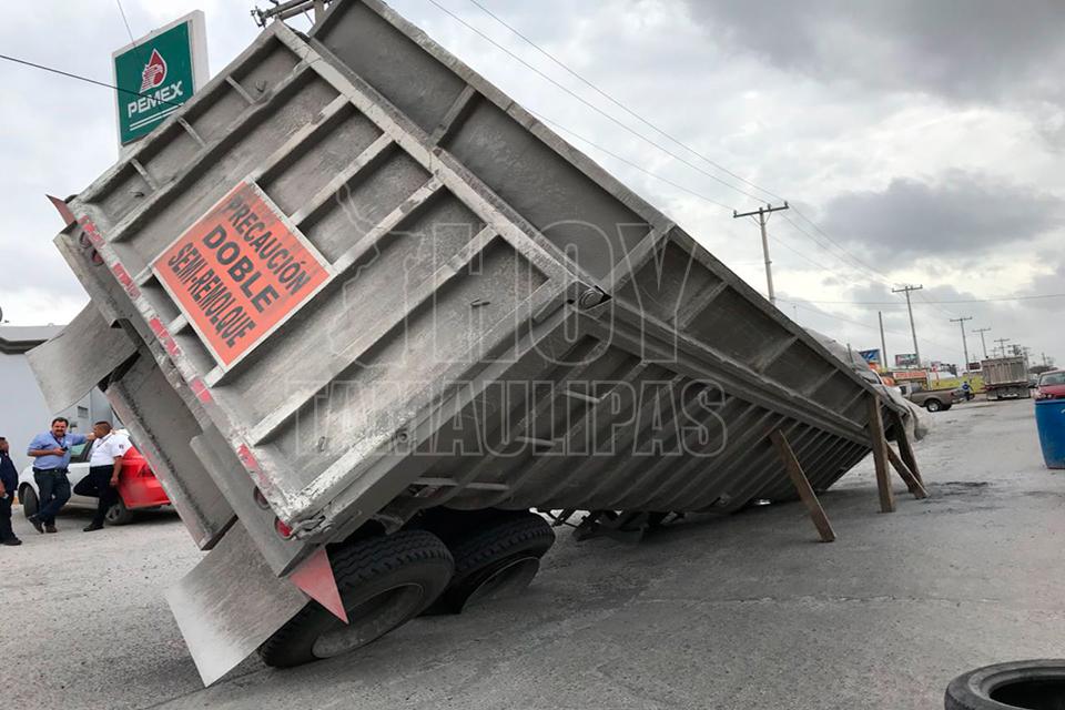 Se “hunde” caja de tráiler cargada con arena en Matamoros