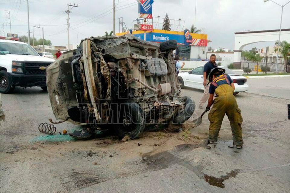 Se pasa alto policía investigador y choca en Matamoros, ocho lesionados