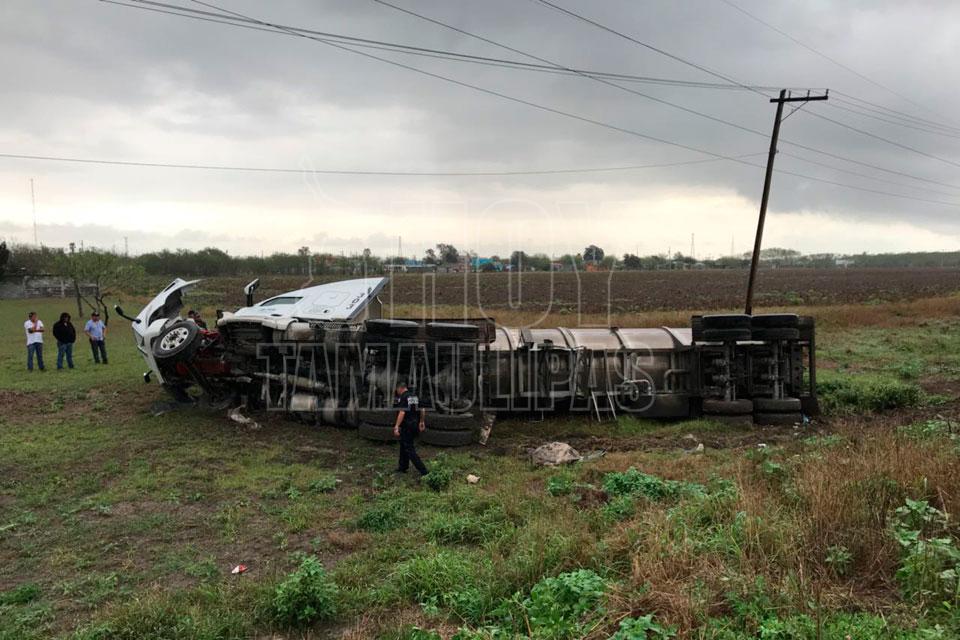 Vuelca pipa cargada con 36 mil litros de diésel en Matamoros