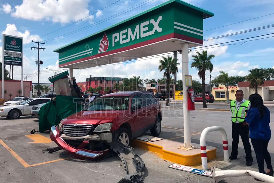 Abuelita se estrella contra bomba de gasolinera en Matamoros