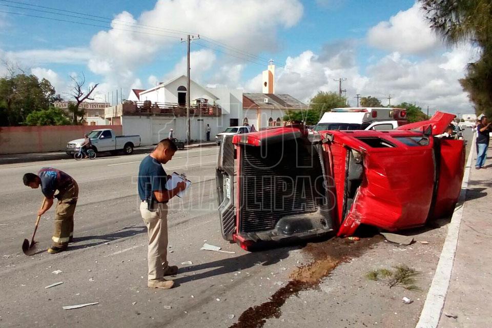 Camión se atraviesa en el camino y provoca choque en Matamoros