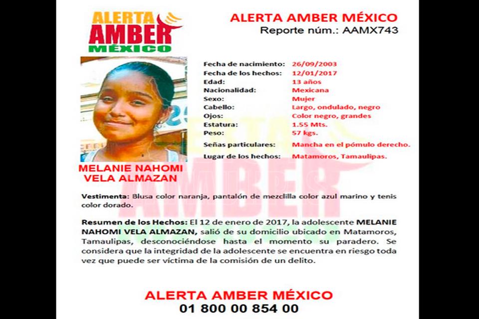 Activan Alerta Amber por menor desaparecida en Matamoros