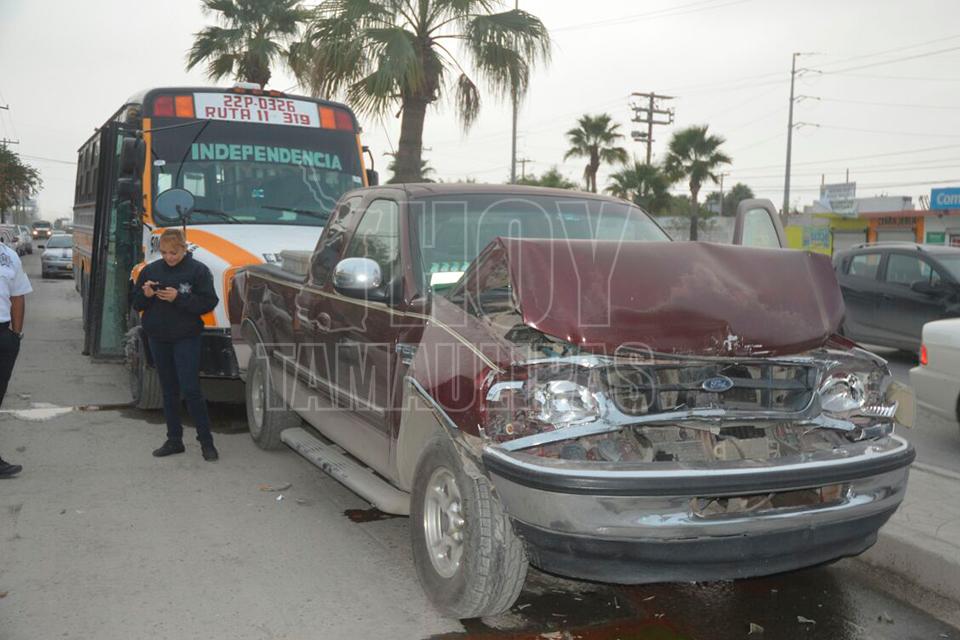 Microbuses hacen “sándwich” a camioneta en Matamoros