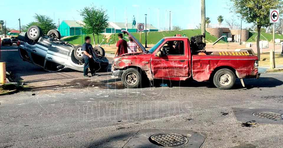 Choque con volcadura en Nuevo Laredo deja daños y mujer herida